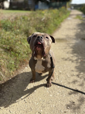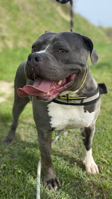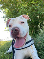 Son seul "défaut", celui qu'on lui impose, cette muselière en promenade. Est-ce que cela l’empêche d’aimer ? De partager des instants inoubliables avec ceux qui choisiront de l’accueillir ? Bien sûr que non. Ce n’est qu’une étiquette, une contrainte réglementaire sans rapport avec son cœur immense et sa gentillesse naturelle mais avec ses caractéristiques physiques.